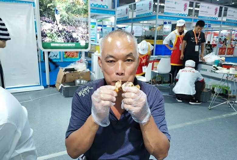 這位叔叔連續(xù)兩天從湘佳展位上買了石門土雞。叔叔說(shuō):“我昨天買了湘佳的石門土雞,味道的確不錯(cuò),我馬上要去廣州幫女兒帶寶寶,我給她帶一只過(guò)去,給我女兒煲湯喝”。