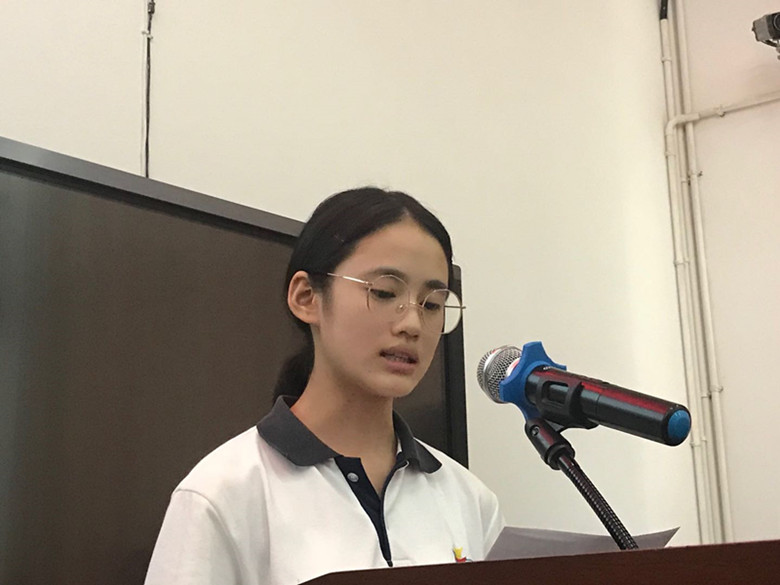 石門一中教師代表肖霄、學(xué)生代表涂鈮在頒獎(jiǎng)儀式上做了發(fā)言。