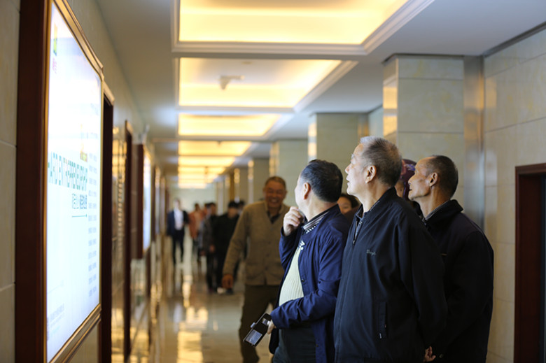 40多位老同志在講解員的帶領(lǐng)下,進(jìn)入產(chǎn)業(yè)園二樓的文化長廊。