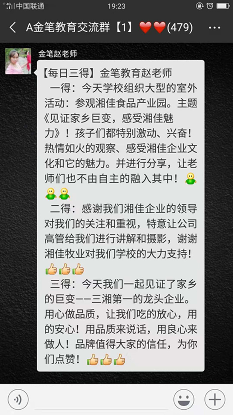 這次參觀企業(yè)的活動,加深了學(xué)生們對家鄉(xiāng)本土企業(yè)湘佳牧業(yè)的了解,開闊了學(xué)生們的眼界,增長了學(xué)生們的見識。