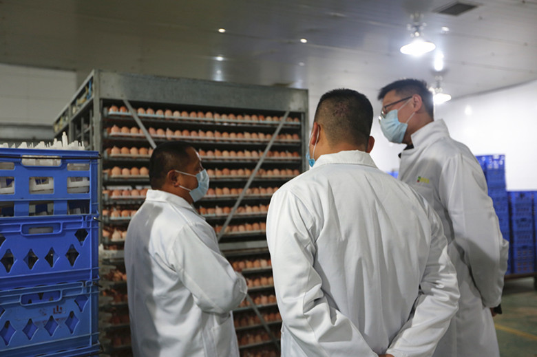 要了解湘佳牧業(yè),湘佳家禽孵化場、湘佳質(zhì)控檢測中心、湘佳食品產(chǎn)業(yè)園肯定是必須參觀的地方。湘佳牧業(yè)相關(guān)部門負(fù)責(zé)向客人詳細(xì)地介紹了雞苗孵化的整個流程、家禽產(chǎn)品的質(zhì)量把控、家禽生鮮產(chǎn)品的生產(chǎn)流程和湘佳企業(yè)發(fā)展情況,寧總和周總聽得全神貫注。