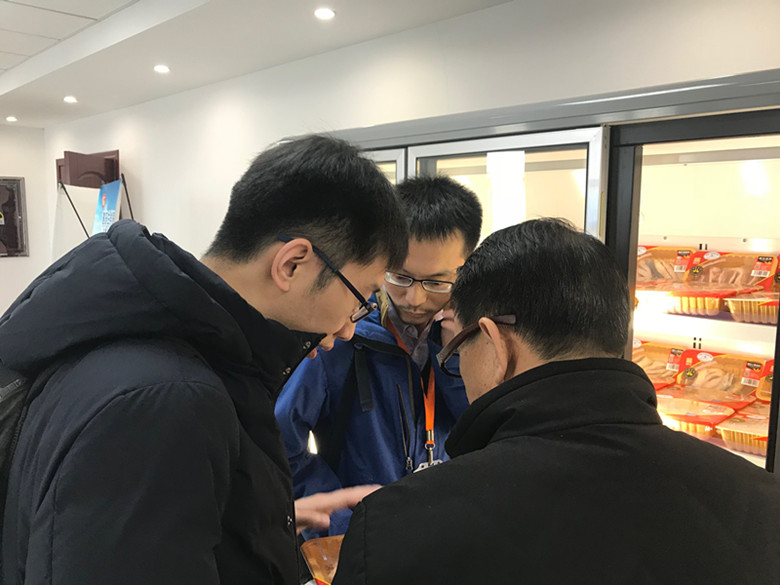 湘佳生鮮家禽產(chǎn)品陳列室,茶園雞、橘園雞、青腳雞、土黑雞、黃油母雞、麻雞、石門土雞等各種雞肉分割品,老人雞肉、兒童雞肉、孕產(chǎn)婦雞肉以及各種雞肉調(diào)理品琳瑯滿目,兩位年輕人逐一拿出一件件陳列品,仔細(xì)辨認(rèn),并從包裝設(shè)計(jì)、產(chǎn)品特性、養(yǎng)殖日齡、產(chǎn)品說(shuō)明等方面提出了許多合理化建議,并希望湘佳生鮮家禽要更多地順應(yīng)“新零售”的趨勢(shì),不斷抓住消費(fèi)者的購(gòu)買“痛點(diǎn)”。