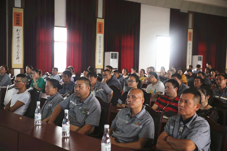 7月16日,湘佳孵化部、服務(wù)部、種禽部、配貨部兩百多名員工利用休息時(shí)間齊聚一堂參加主題為《我與湘佳共成長(zhǎng)》的培訓(xùn)會(huì)。
